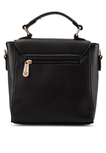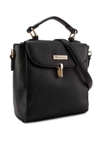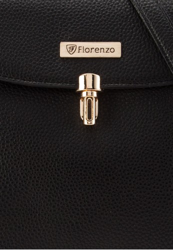 Florenzo 的復古風轉鎖翻蓋斜背包,採方形立體結構包身及轉鎖翻蓋,是時尚百搭的複古風女包設計。