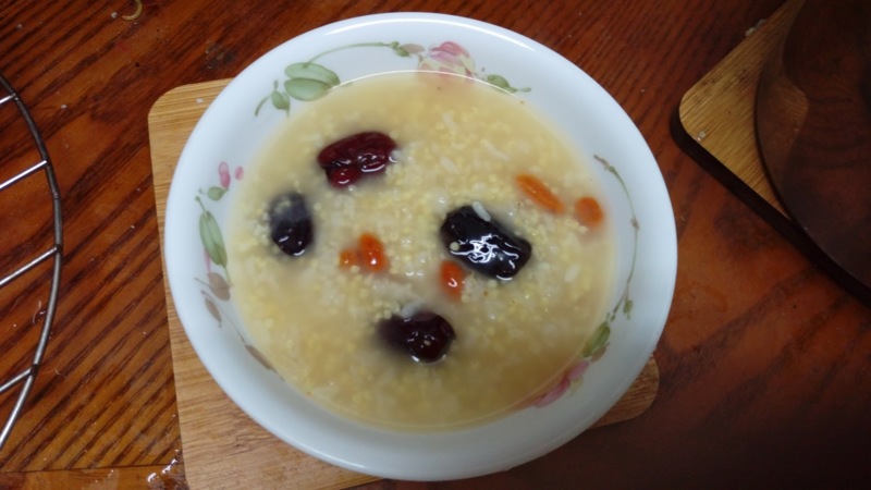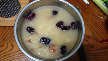 冬天的早晨或消夜(儘量少吃太濃太飽的消夜)可以吃吃熱騰騰的小米糯米粥看看很暖胃。