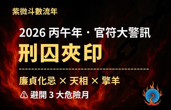 紫微斗數中,有一個名為「刑囚夾印」的特殊格局,被視為法律糾紛與文書災難的紅色警報。特別是在即將到來的 2026 丙午火年(九紫離火運能量最強的一年),這個格局的破壞力將被大幅煽動。
