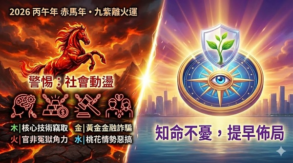 2026丙午年赤馬年紫微斗數專業分析九紫離火運下的『四邊犯法』格局,從台南黃金金融犯罪案看運勢精準應驗,教您如何知命不憂。隨著 2026 丙午年「九紫離火運」赤馬年的臨近,坊間流傳許多關於兩岸戰事、社會動盪的傳聞,搞得人心惶惶。身為命理研究者,我們必須透過紫微斗數的嚴謹邏輯,從國家運勢、企業經營到個人事業,一一剖析背後的真相。