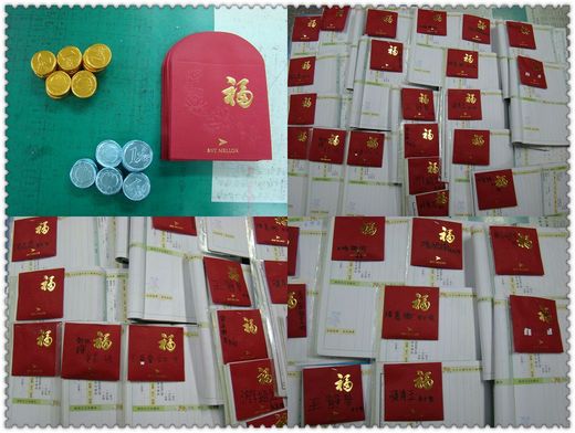 老人家負責表面的~紅包袋的提供啦!信紙的提供啦!外加兩枚閃亮亮的歐元巧克力!