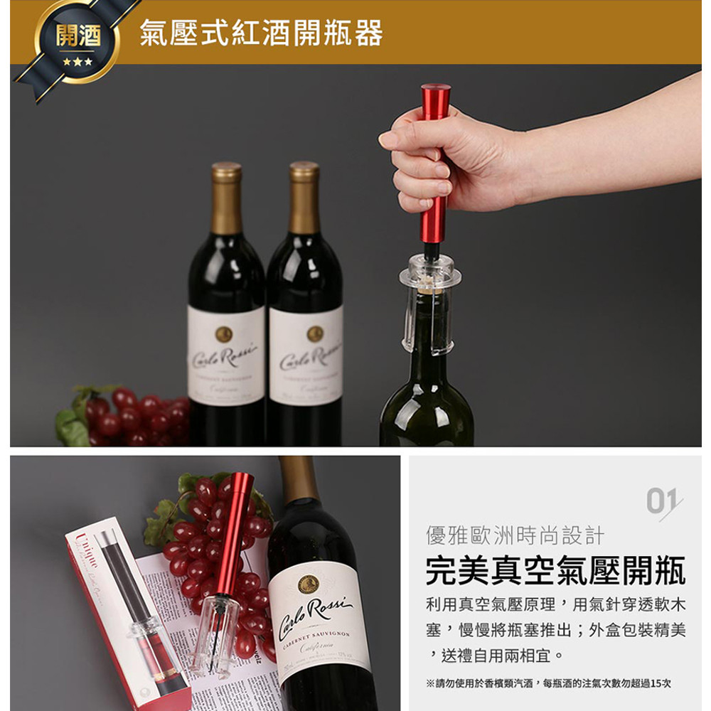 完美真空氣壓開瓶,純正鋁合金質感佳。