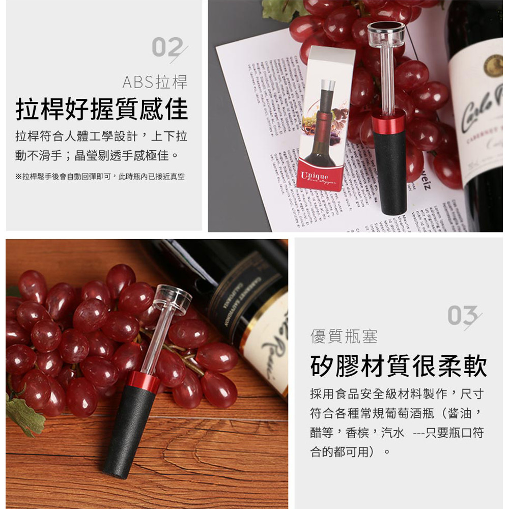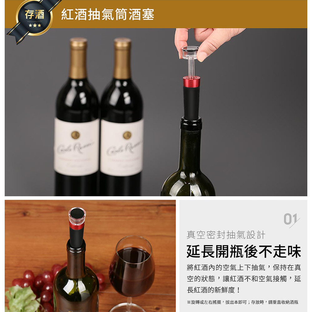 紅酒抽氣桶酒塞,真空密封抽氣設計,