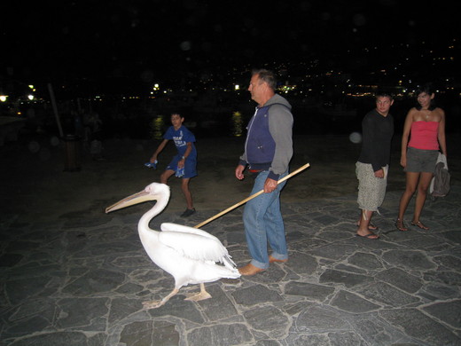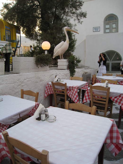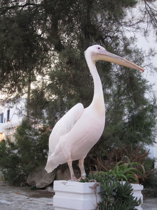 據說島上共有3隻鵜鶘,早上9點前漁船靠岸,他們會準時到市場報到,等到漁市買賣後,他們會纏著漁夫撒嬌地要魚吃,他們是米克諾斯島上的重要島民。