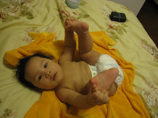 洗完澡後 還表演了瑜珈