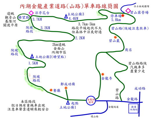 12月19日晚上八點三十分難得的暖冬氣溫合適,與友人D第一次騎內湖金龍產業道路到碧山露營場,內湖金龍產業道路全長約6公里,晚上車輛稀少路燈明亮非常適合夜騎,從0.5km-1.5km及3.2km-3.8km的坡度具有挑戰性可以讓你滿足成就感,至於山上夜景更是美麗,3.8km處可遠望觀音山及士林北投夜色,到達目的地碧山露營場後,因山區光害少觀星更是台北最好的地方,如果覺得風櫃嘴人潮太多,來內湖金龍產業道路到碧山露營場騎車保證收穫滿載而歸。
