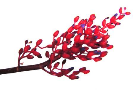 從葉叢抽生花莖,圓錐花序呈珊瑚狀,