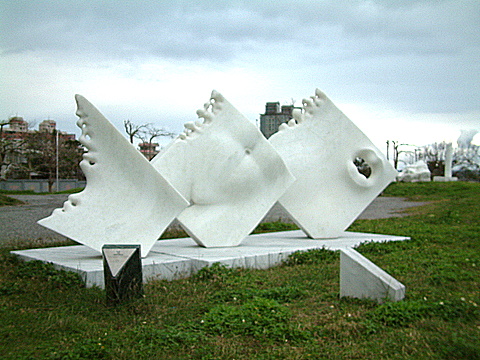~精雕作品~、從獸造型,或寫實、或抽象的現代作品均有,配合散志在大草坪上