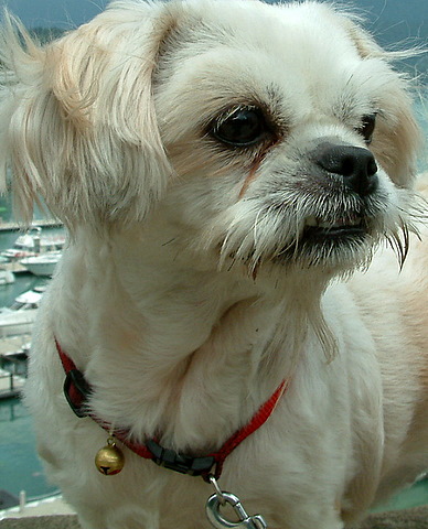 一隻小狗 在溪邊看見了一隻青蛙覺得好奇 猛的一撲
