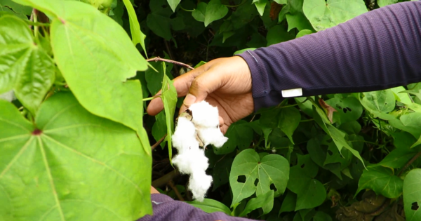 鄭宗坤先生先帶我們去參觀溫室的棉花田