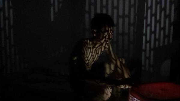 用洗衣籃罩住手電筒