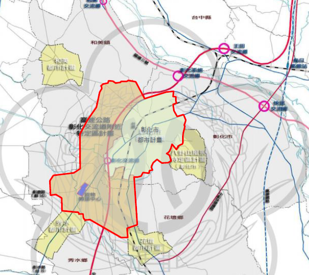 上圖為彰化交流道特定區計畫的範圍及彰化市都市計畫的範圍總面積為3194.92公頃