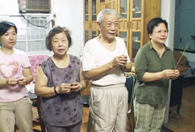 交通部長郭瑤琪(右一)昨天回到桃園市和父母親(右二、三)一起祭祖。