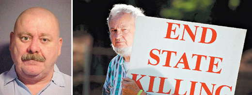 美國常見反對死刑的抗議(右圖),但很多州仍以各種方式執行死刑,奧克拉荷馬州的杜提甚(左圖)至以動物安樂死藥物處死。