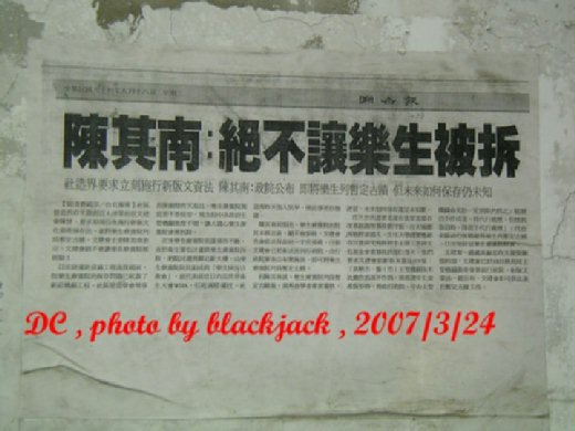 我迷上了樂生療養院,我不能接受藍綠政權的大官們趕走那些活歷史,我不能接受藍綠政權的大官們拆除那些老房子,也許我不可能參加樂生療養院的抗爭,但我真的不能同意政府以如此的手段侵害人權!!