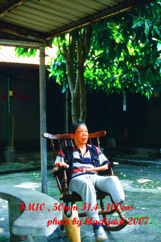 圖片說明:黃文章伯伯,當時他邊坐搖椅邊唱「樂生故事多」,照片為本人所拍攝,有著作權,未經本人「事前授權」,勿以任何理由轉載與使用,其餘見註。