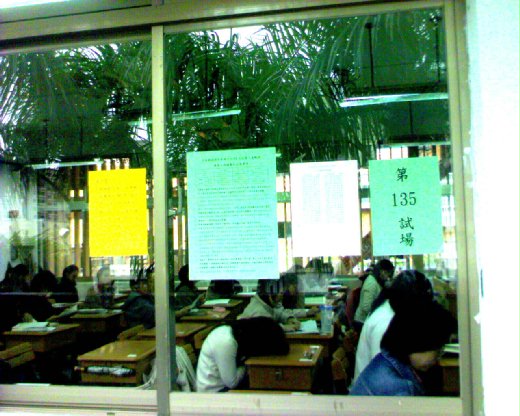 那天很冷,很多人陪考,陪考的景象就是一些人把校門口補習班發的傳單,舖在地上坐在上面,還蓋著大衣,活像街頭的高級流浪漢