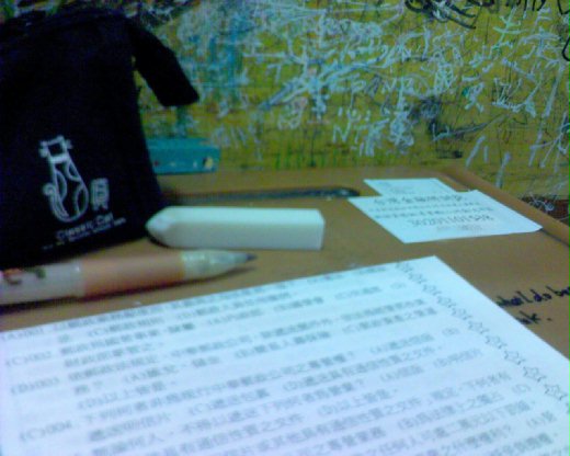 考試卷發下來的那一剎那,我的神經全部高唱著安眠進行曲,用力張開雙眼努力的看著那些好似有點熟悉的題目,現在跟題目博感情好像太晚了一點.