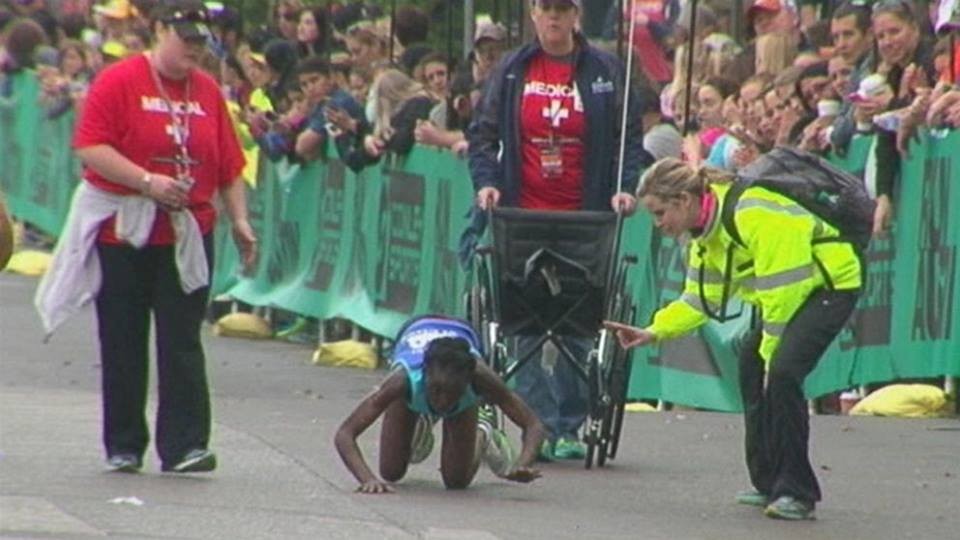 29歲的吉提克(Hyvon Ngetich)是一名職業跑者,參加過大大小小比賽,包括2015年2月17日在美國德州舉辦的奧斯汀馬拉松賽事(Austin Marathon ),她一路保持領先,眼看離終點剩不到1公里。然而,這時她突然因為血糖過低,整個人倒了下來,連站都站不起來,正當所有人為吉提克感到嘆息,以為她要放棄、退賽時...