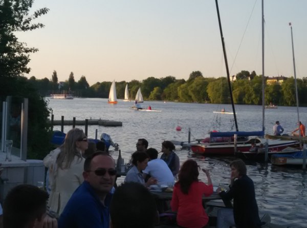 上次傷兵就醫後考量體能,草草造訪市集意猶未盡,今天再度前往做一番徹底的體驗,香料、水果、蔬菜、花卉看的有點不知如何取捨,肉品類更不在話下,還好出門在外,肉鮮僅止於觀賞用,光是如此就夠敗家了,趕緊喝個咖啡外加鬆餅,冷卻一下購物的衝動,再來就是赴教授湖畔晚餐之約,看樣子帆船、划舟也是本地熱門休閒活動之一