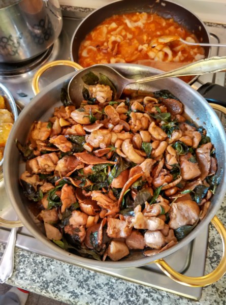 地陪邀了幾位在地友人來租屋處小聚,指定品嚐台灣口味食物,還好傷兵身體狀況恢復的不錯,小試身手總算端出幾樣好菜,有點小佩服傷兵,居然這種廚具設備下能煮出台灣菜來,參與聚會的法國友人也做了甜點,當然美酒更是不可缺少,雖然語言不通溝通困難,但是佳餚、美酒就是溝通的利器,一頓飯下來賓主盡歡
