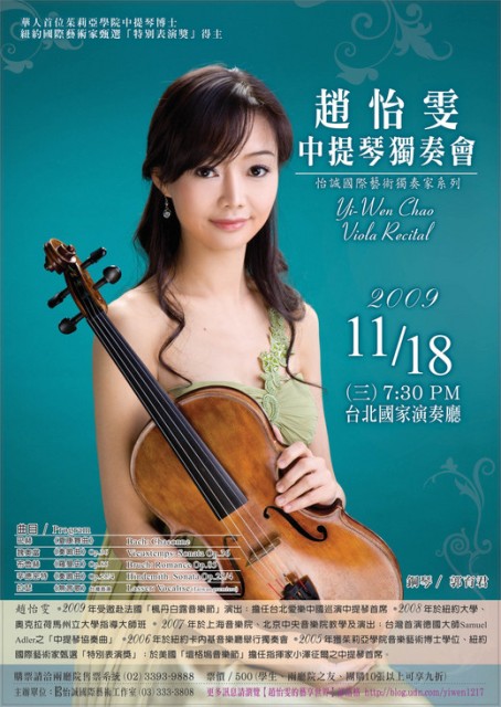 圖片出處:〈「趙怡雯中提琴獨奏會」海報分享!〉