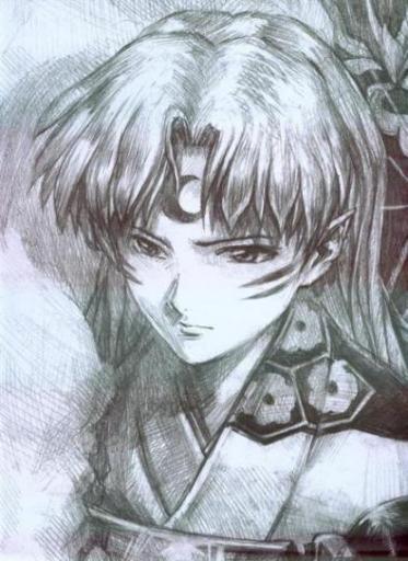 小學上美術課,老師曾經讓兩位同學當模特兒,要班上的其它同學,用鉛筆畫人物素描,當然,不善繪畫的我,終究還是畫了一幅「失真度百分之百」的畫,不過,那時所畫的,只是隨機性的人物素描,與這幅畫不一樣,我想,這幅相似度接近百分之百的素描,應該是出自一個,將殺生丸視為情人的女性藝術家。