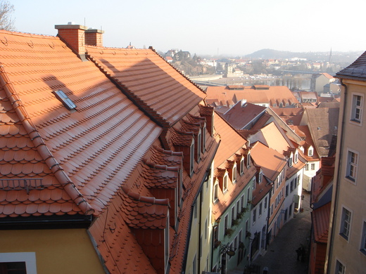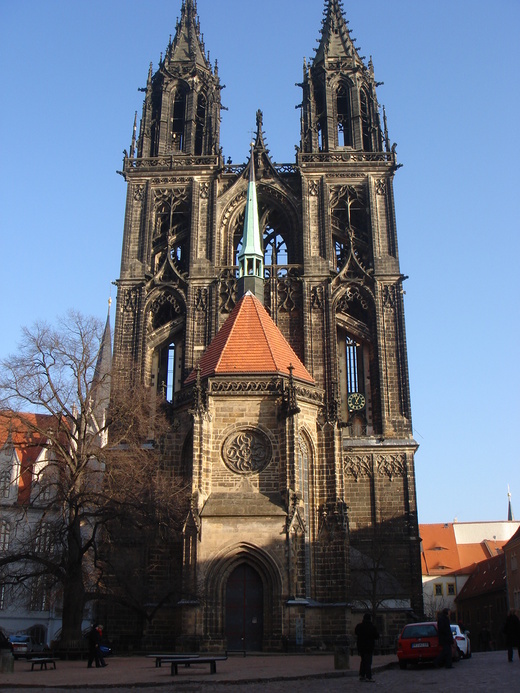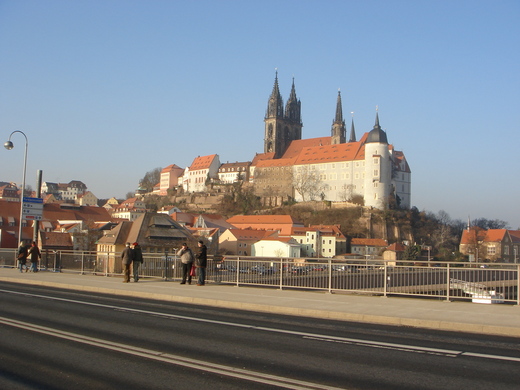 沿著舊城區小路一直走就可以走到最後的終點站大教堂,感覺上跟布拉格的那個教堂的旅遊方式差不多,都是過橋走小路蜿蜒上一個小山丘,只是規模差了十幾倍罷了,但是我發現這裡跟死氣沉沉的德勒斯登不一樣,白牆紅瓦櫛比鱗次的建築物都顯得很有朝氣,真的很有布拉格的感覺。 其實我真的覺得德勒斯登把聖母教堂蓋起來是對的,整棟新新的可以補一補這個城市的陽氣,在河邊那些陰氣很重黑黑髒髒的老建築物們在冬天實在是令人無法招架,因為他們永遠在背光的那一面,感覺上就像那段歷史一樣陰暗沉默地注視著這個城市的一切,監控著住在北邊新城的人們,只有聖母教堂和周邊全新的建築物白白淨淨的站在向陽的那面迎接遊客。