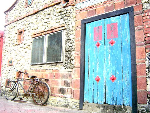 木板門 磚牆