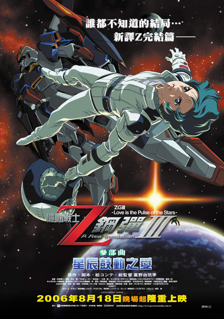 這是我第一次看完鋼彈的劇場版,而且還是三部曲的大作,三部加起來約5個小時,看完真的是覺得很腰酸背痛,日本動畫的劇場版,對我來說跟電影是無異的東西,能夠在台灣上院線的日本動畫也才那幾部,老字號的宮崎駿、小孩喜歡的火影忍者、皮卡丘、柯南,我所喜歡的日本動畫幾乎都沒上院線,比如說攻殼機動隊、太空戰士VII-降臨神子,所以,我才高高興興的看了這系列: