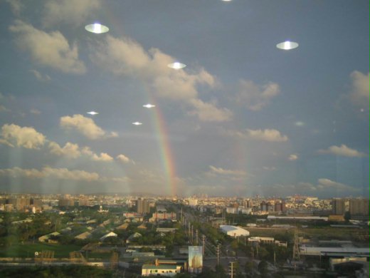 另外一次,是在2年前和朋友到宜蘭冬山河公園時,目睹萬里無雲的晴朗天氣下,距離我們不知多高遠的天空兀自拆解稀稀的雲層,將之化成飄散的雨,然後悄悄形成地面未下雨的彩虹。看著彩虹一段段形成,最後甚至連霓也大功告成,景象之美,可謂生平僅見!