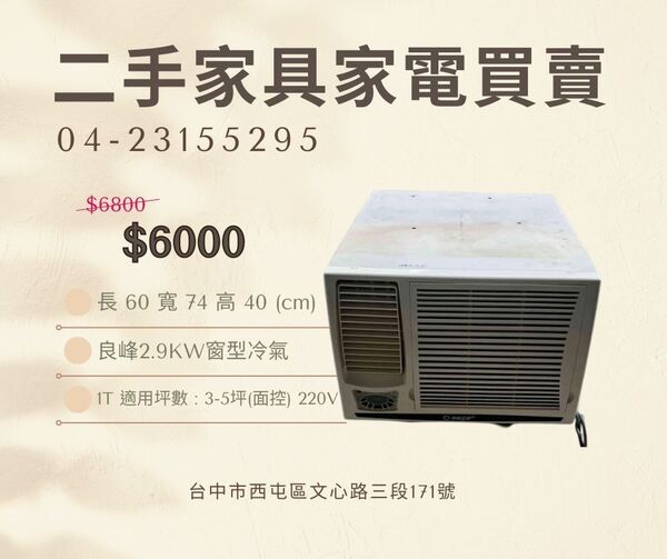 - 良峰 2.9KW 窗型 ($6,000): 經濟實惠,耐操好用,租屋族最推。