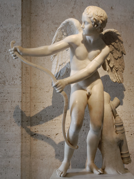 Eros- was the Greek god of love. His Roman counterpart was Cupid ("desire"). Some myths make him a primordial god, while in other myths, he is the son of Aphrodite.