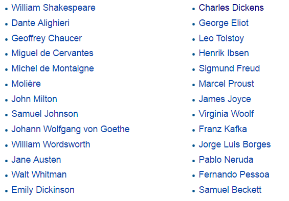discussing 26 writers whom he sees as central to the canon: