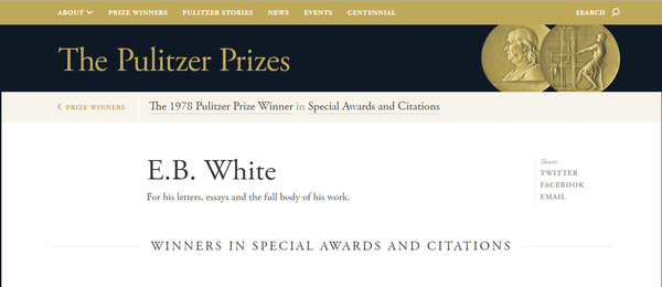 1978: A special citation to E. B. White for his letters, essays and the full body of his work.