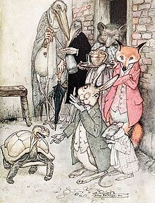 - is one of Aesop's Fables and is numbered 226 in the Perry Index. The account of a race between unequal partners has attracted conflicting interpretations. It is itself a variant of a common folktale theme in which ingenuity and trickery (rather than doggedness) are employed to overcome a stronger opponent.