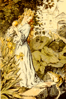(1) '' The Frog Princess ''- is a fairy tale, best known through the Brothers Grimm's written version; traditionally it is the first story in their collection. The 2009 Disney film, The Princess and the Frog, is loosely based on this story. In the tale, a spoiled princess reluctantly befriends the Frog Prince (meeting him after dropping a gold ball into a pond), who magically transforms into a handsome prince. Although in modern versions the transformation is invariably triggered by the princess kissing the frog, in the original Grimm version of the story the frog's spell was broken when the princess threw it against a wall in disgust.
