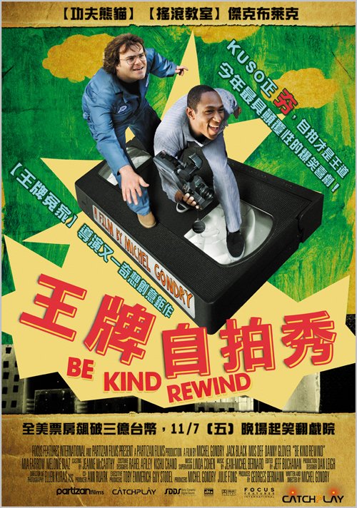 光看海報及傑克布萊克本以為是一部很瘋狂的喜劇片結果並不然,本片儼然是一部像電影致敬的作品。故事很有趣兩位死檔因為錄影帶(令人懷念的媒介,豬歌亮應該感謝的產物)的消磁,他們決定自行拍攝電影租給顧客,想不到竟然大受歡迎…,雖然過程很好笑結局卻是很溫馨。如果你是一位愛看電影的觀眾一定可以輕易看出他們翻拍那些電影(魔鬼剋星、機器戰警、尖峰時刻…)。故事中還提到一位早逝爵士樂手FATS WALLER(過看名字就知道他愛吃又胖,長得還蠻像王哥柳哥遊台灣的王哥),擅長管風琴的演奏曲風屬於自由的搖擺樂名盛一時,他也演過電影片中有提到的暴風雨,最後這位歌手染病死於肺炎(我想就是現在的流感),死時才38歲而這位樂手的故事也串起整部片最重要的情結。有趣的是看這兩位自拍的過程沒有大卡司沒有大製作他們簡陋的攝影技巧來達到效果,想想看在如果這些片段是一般人自拍放在網路上一定會出名。導演雖然沒有像之前作品再用華麗的影像,但自拍過程的設計也是很有創意的,傑克布萊克的喜感依舊是有但是這麼有趣的劇本,似乎比他的演技更吸引人。
