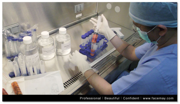 脂肪移植前先取得200cc脂肪後,開始依照比例分裝至經過徹底消毒的離心管,開始進行脂肪幹細胞的培養萃取。