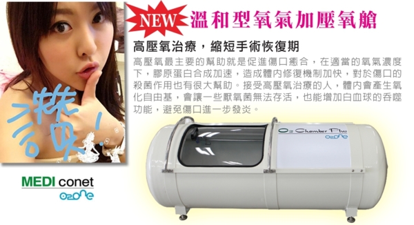 高壓氧治療是將病人置於高壓艙內,以一般自然呼吸的方式呼吸1.6到3個大氣壓的純氧,可使組織細胞含氧量提高,改善血液循環而降低組織水腫現象,縮短術後恢復期;另移植的脂肪細胞因為組織含氧量提升,也可以提高脂肪存活率,這是別家沒有的設備喔!