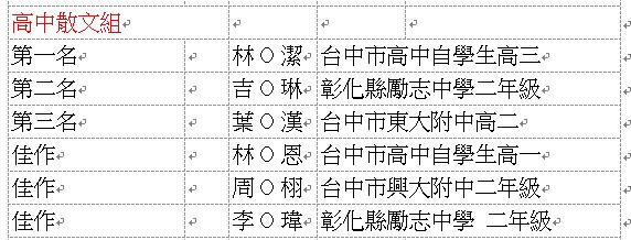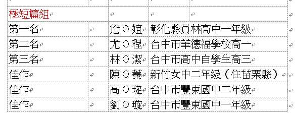 恭喜得獎者,沒有得獎的同學不要氣餒,請再接再勵!!