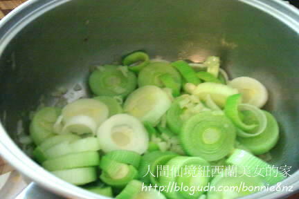 燒熱鍋加奶油,炒香洋蔥、大蒜,