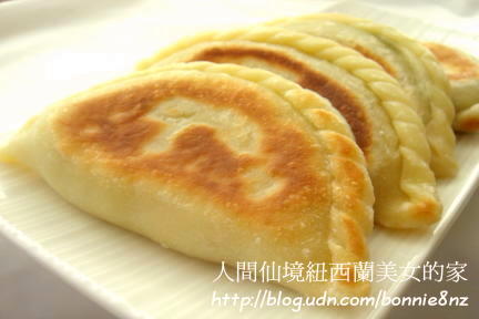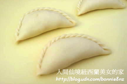 韭菜盒子的捏花跟上次做咖哩餃 是一樣的,