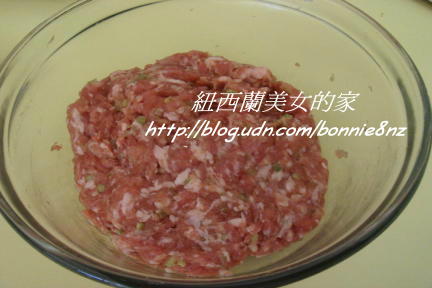 所有餡料混合攪拌成有黏性,備用。
