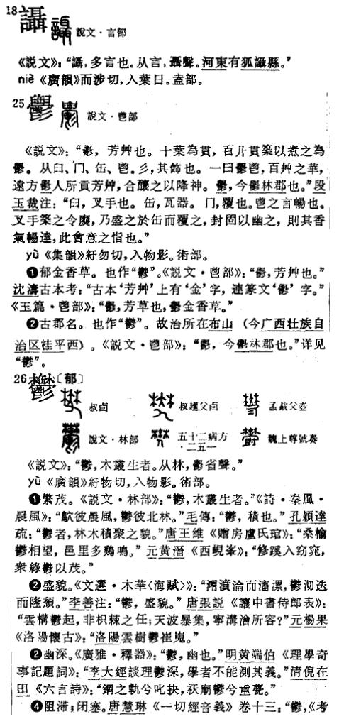 又簡體字「郁」, 原文為「鬱」, 字典裡則「鬱」有另一字形 (詳附圖). 「岩」四庫本作
