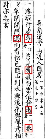 白雲依靜渚【白雲依靜者】,春草閉閒門【芳草閉閒門】。