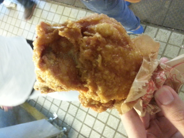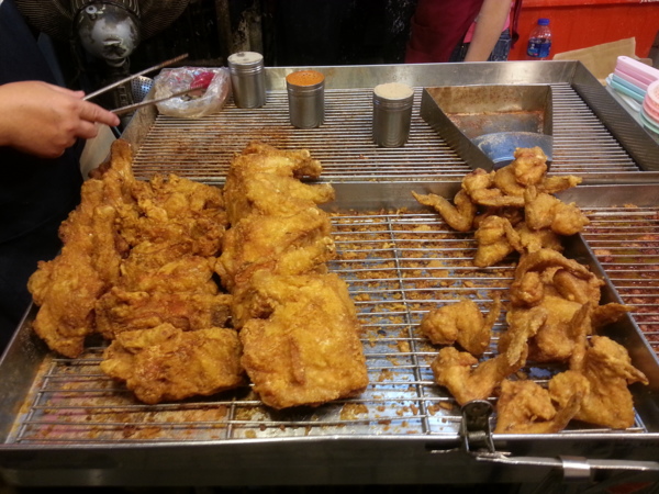 汐止黃昏市場最大的賣點,阿義炸雞。從小在汐止長大的我,每次放學總會偷偷買個幾支雞翅吃吃;肉的分量十足,絕不裹粉充數,大推雞排跟大腿,口感吃起來不比連鎖知名速食店所賣的差,更別提一口咬下去那熱騰騰的湯汁了。