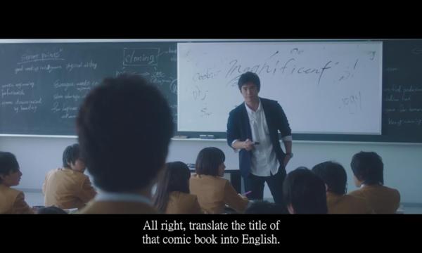 主角蓮實聖司是聰明可靠又受歡迎的英語教師,身後白板上寫的「magnificent」是古字,意味著比excellent更好的意思。