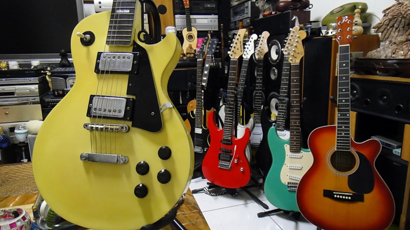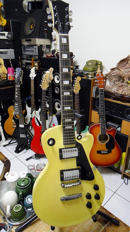 平常我愛搞自拍..很多人說我是患有//照慾症//的自戀狂..我還有一個嗜好就是買樂器..家裡明明已經有九把電吉他了..今天還是怎不住搞了一把高檔的盒裝電吉他回來..這樣算敗家嗎...中午郵差扛著一大箱包裹進辦公室..同事就大喊~李總...你又拜家了喔~天阿..我有那麼糟糕嗎..3月7日買一把電吉他..3月11日又買一把更高檔的..家裡有一把幾乎一樣的吉他..牌價是28500元..今天買的這一把..竟然只花我210元...別懷疑..就是210元..不是美金..不是人民幣..也不是港幣..是花新台幣210元把這把電吉他買回家..哈哈..舒服..4包香菸的錢換一把電吉他...不要問我從哪裡搞來的..也不要叫我割愛喔..這可是我犧牲睡眠花很多心思才搞到的ㄟ...還是那句老話..這是我的另類不動產..等哪天我老到玩不動了..這些樂器也變古董了..嘿嘿..不錯的啦..