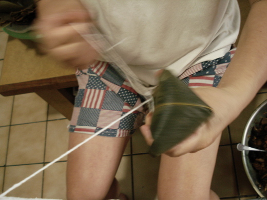 圖示:豬頭包粽的處女秀~第一個粽子誕生了!